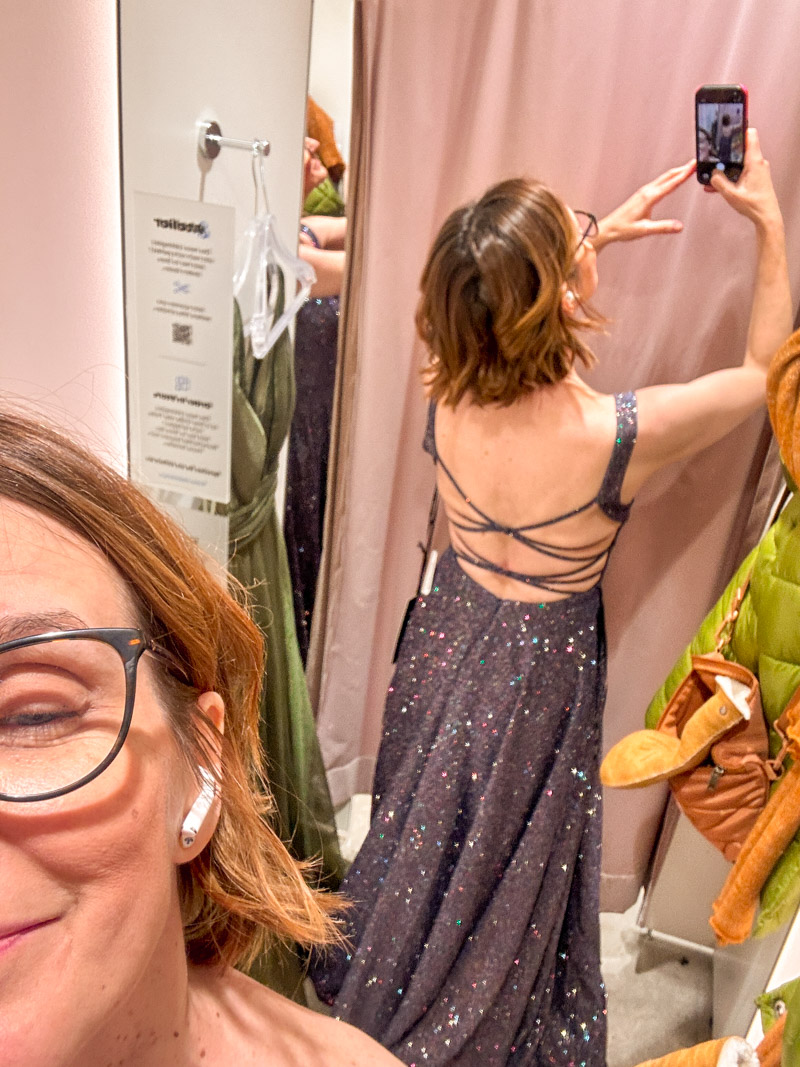 Und als ich dann neulich eine Badematte für die Tochter besorgen war, ging ich am P&C vorbei und was soll ich sagen: kein Bogerl, sondern Direttissima in die Ballkleidabteilung bin ich marschiert. Ohne Zögern. Völlig unvorbereitet, keine Ahnung habend, was ich denn überhaupt suche oder ob ich überhaupt suche. Einfach nur rein und anprobieren.
